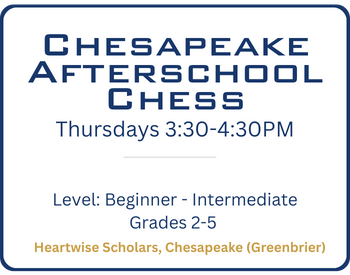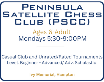 HRCA is committed to bringing the life benefits of chess to people of all ages and abilities throughout Hampton Roads. In addition to our many school chess programs, we currently offer a variety of programming across the Seven Cities. Click on the program name below each chart for more detailed info, including registration links and current openings.